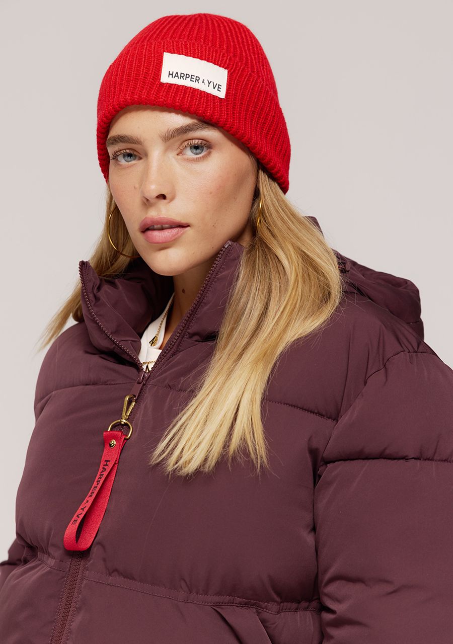 De rode HARPER Beanie: Jouw Essentie Winteraccessoire De HARPER beanie in rood is de ultieme kameleon voor je wintergarderobe. Hij is de perfecte basis die bij elke outfit past en straalt moeiteloze elegantie uit. Gemaakt van heerlijk zacht acryl en afgewerkt met een subtiel, discreet logo. Deze beanie is niet zomaar een muts; het is een statement van minimalistische klasse. Draag 'm en omarm de kou in stijl.