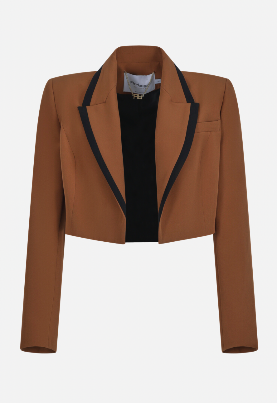 Artigli Cropped Blazer Camel met Bies