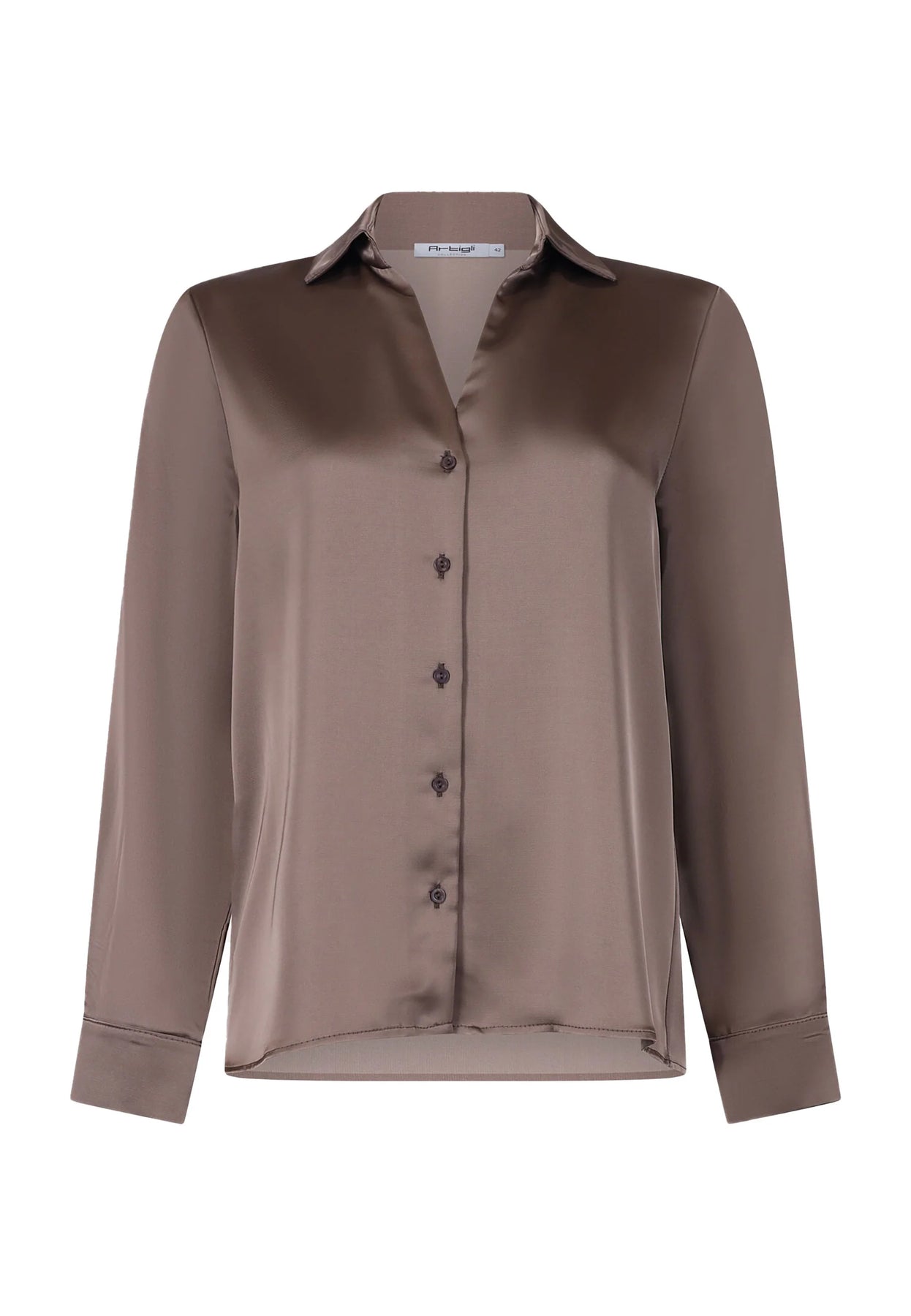 Artigli Satijnen Blouse in taupe , mooi te combineren met matching pantalon.