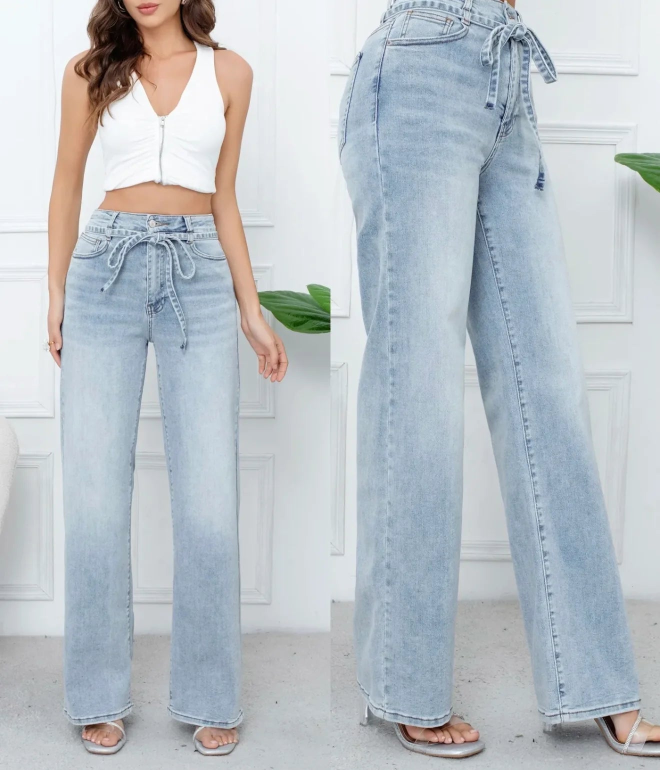 Light Blue Straight Leg Jeans Zoey met vetresluiting details