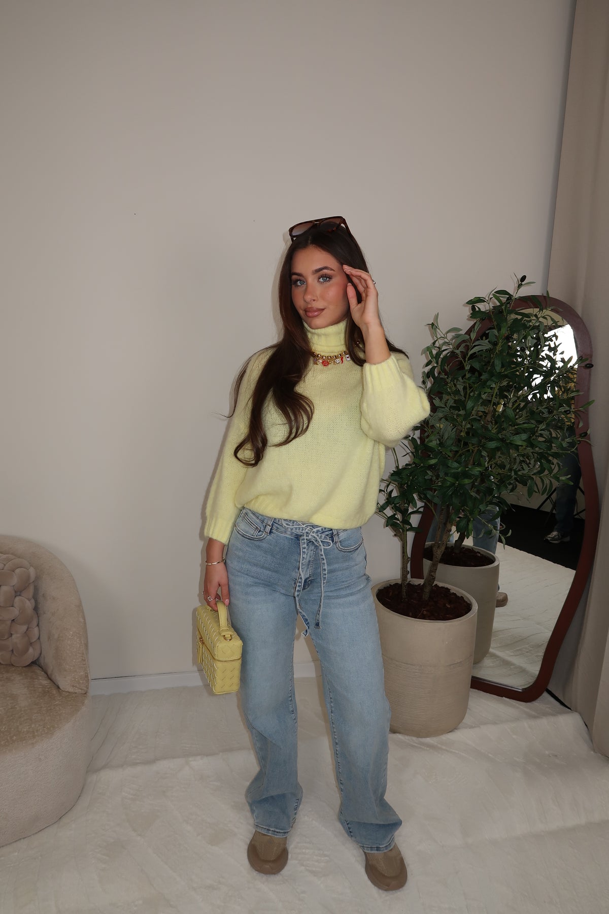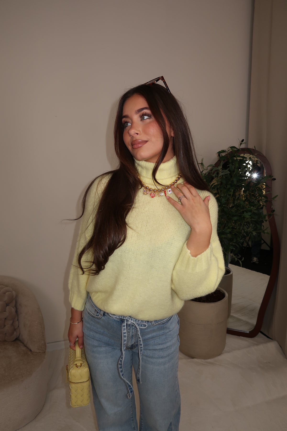 YYellow Knitted Sweater met Col en driekwart mouwen trui is One Size en kan gedragen worden tm maat 40.