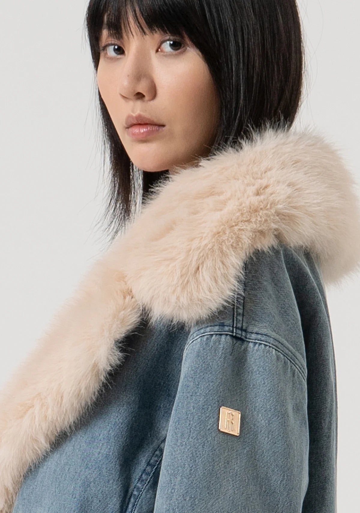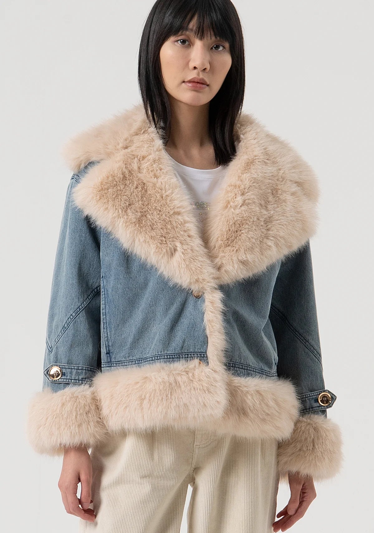 Fracomina Denim Oversized Lammy Jacket met gouden knopen