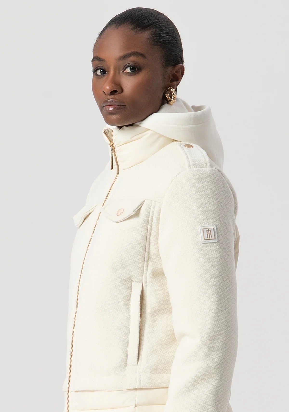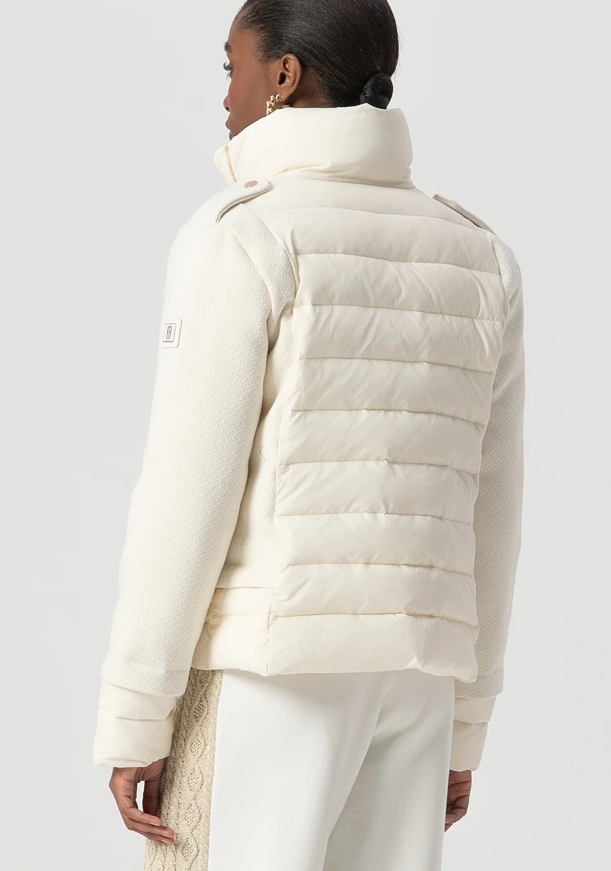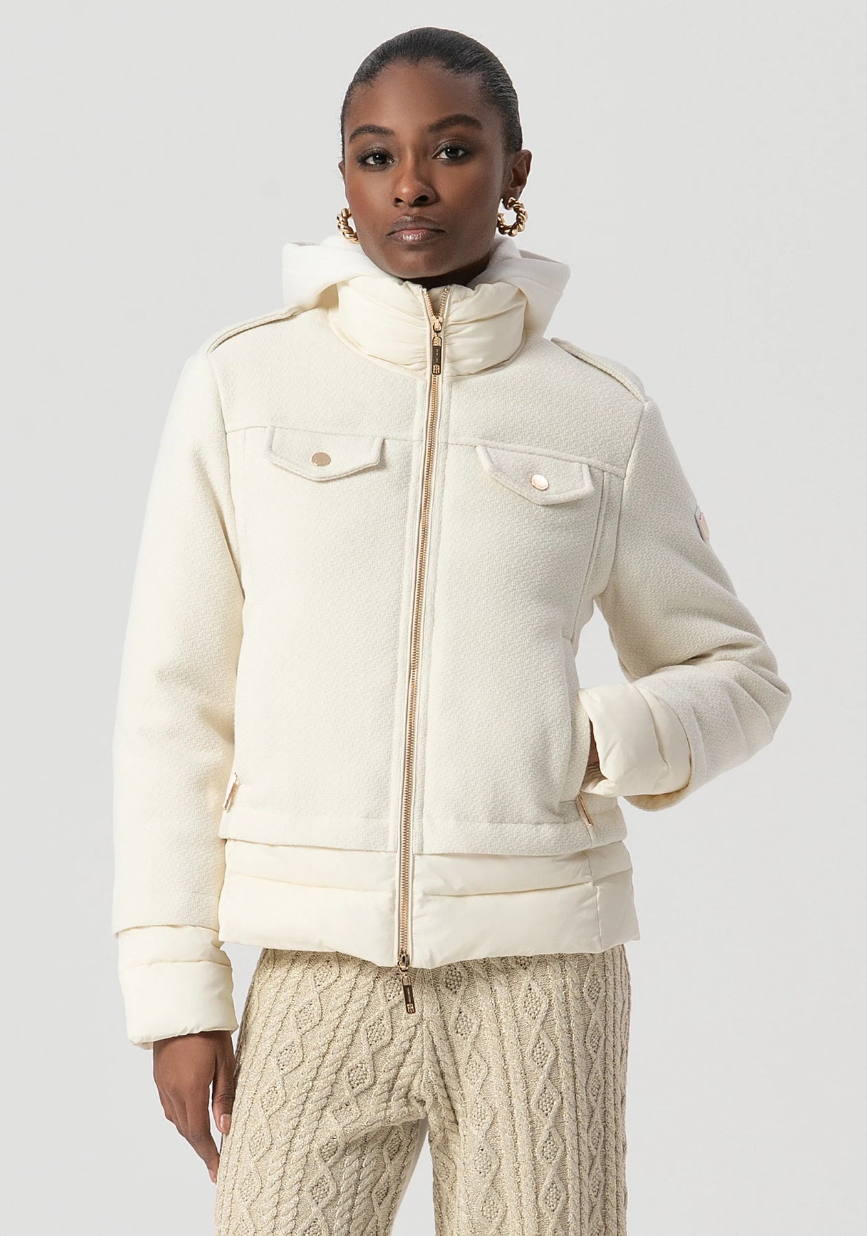 Fracomina Gewatteerde Jas in Off-White met gouden details en ritssluiting.