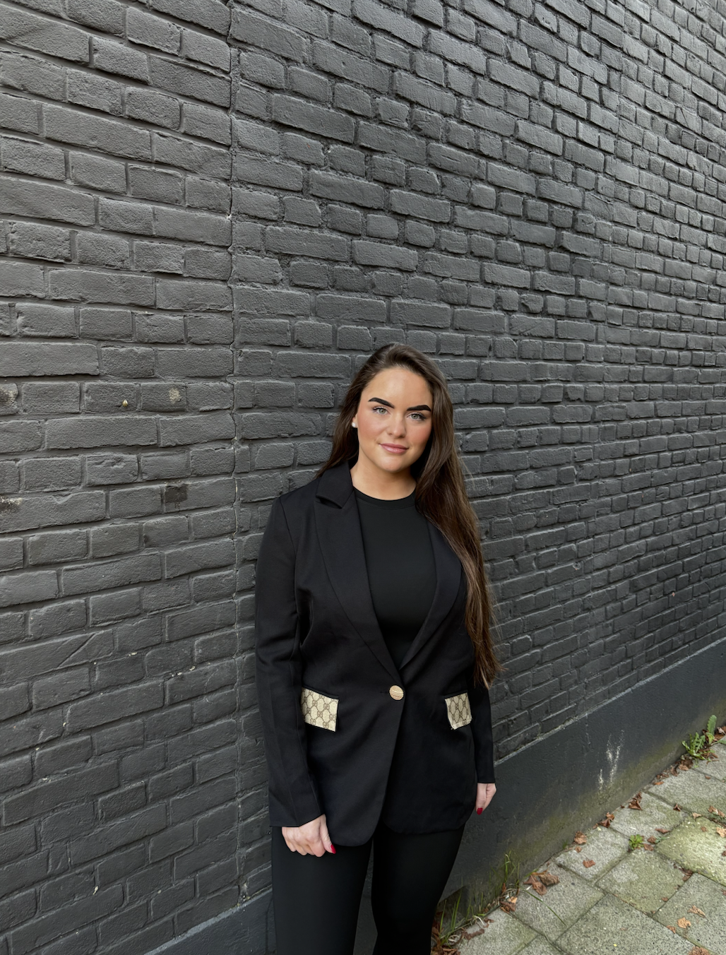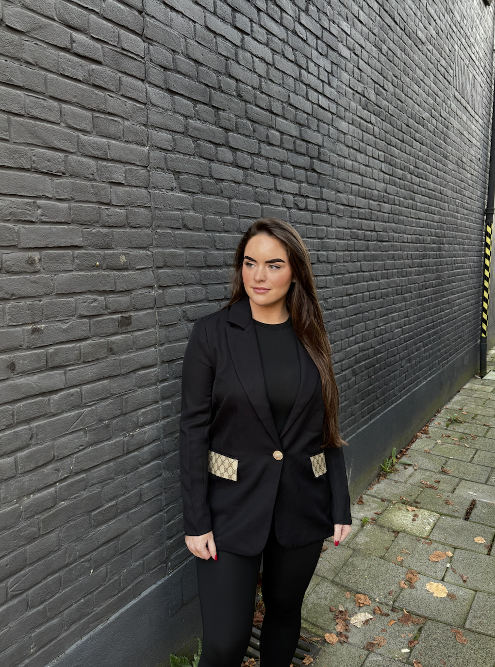 Q X R Oversized Zwarte Blazer met G Designer zakken
