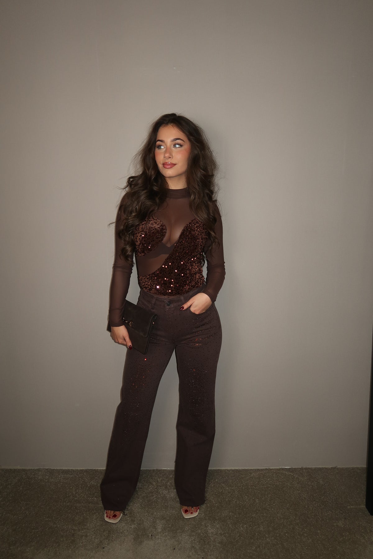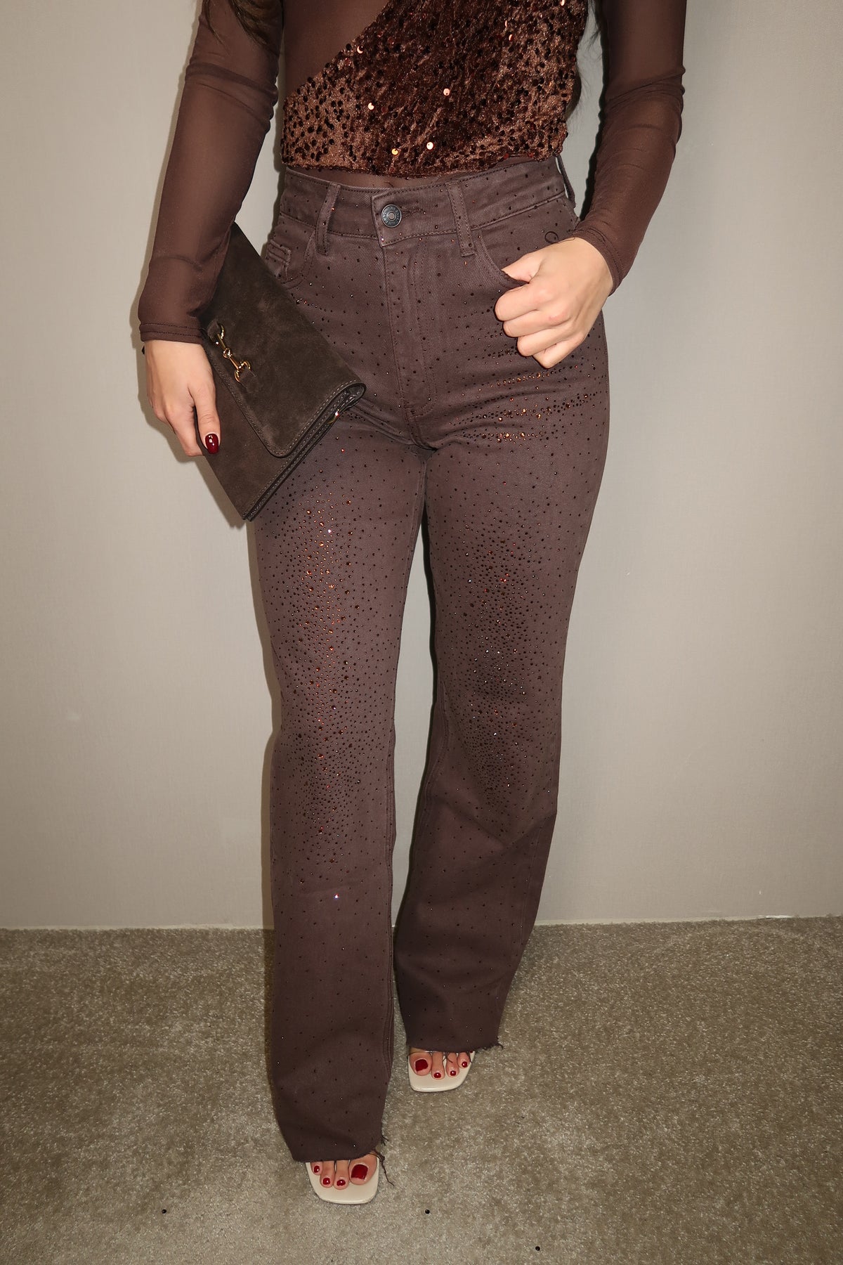 Queen Hearts Straight Leg Jeans Strass Donkerbruin