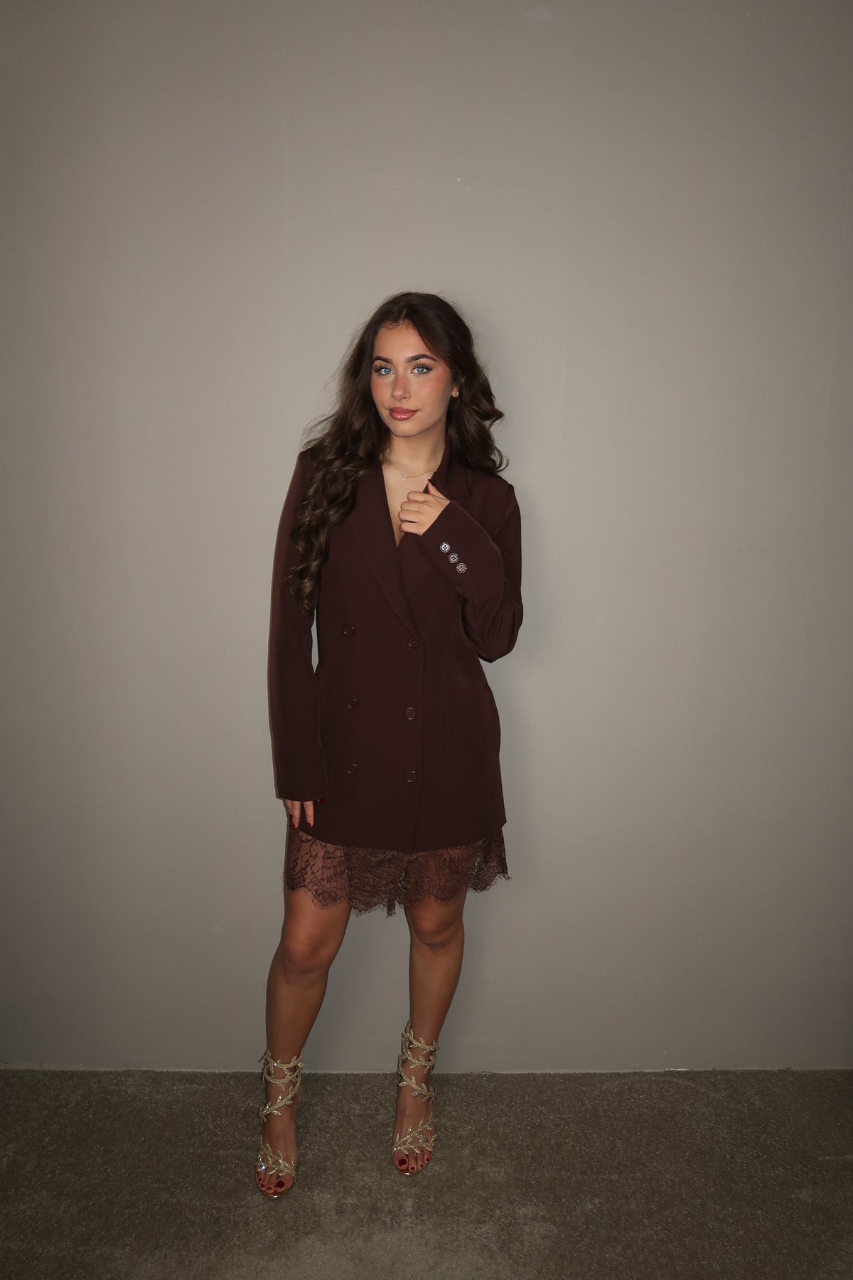Dark Brown Blazerdress met Kant
