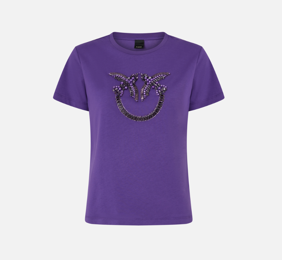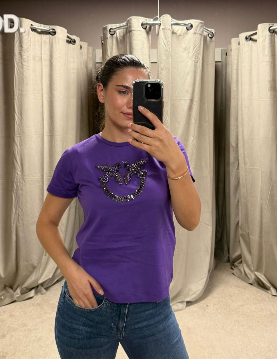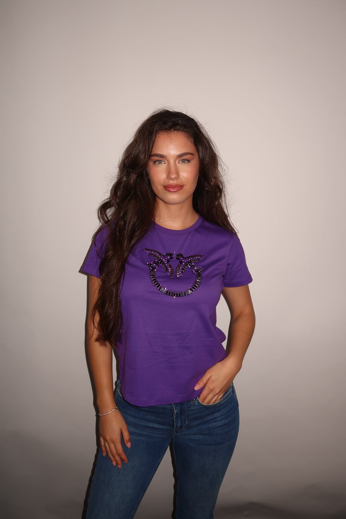 Pinko Quentin T-Shirt in Paars met Pinko Logo in Steentjes.