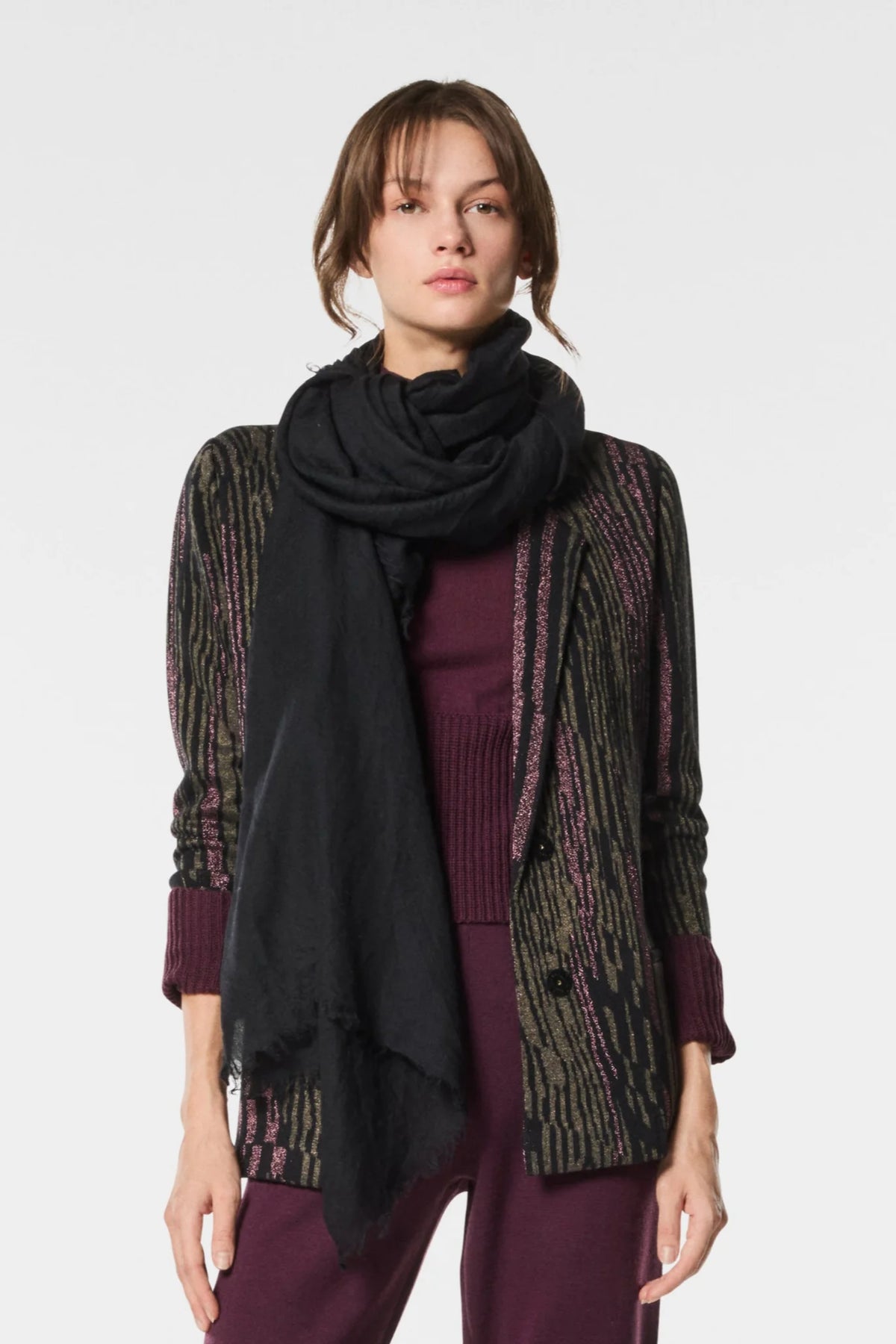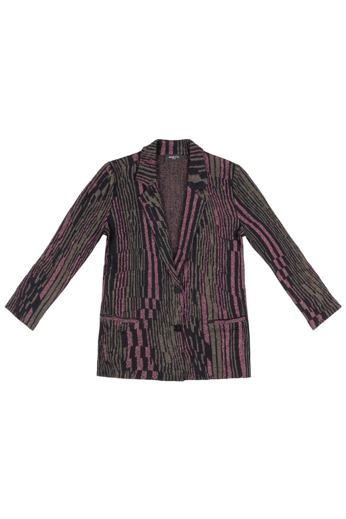 Nenette Blazer Vest in Luxe Knit met roze, army green en zwarte details.