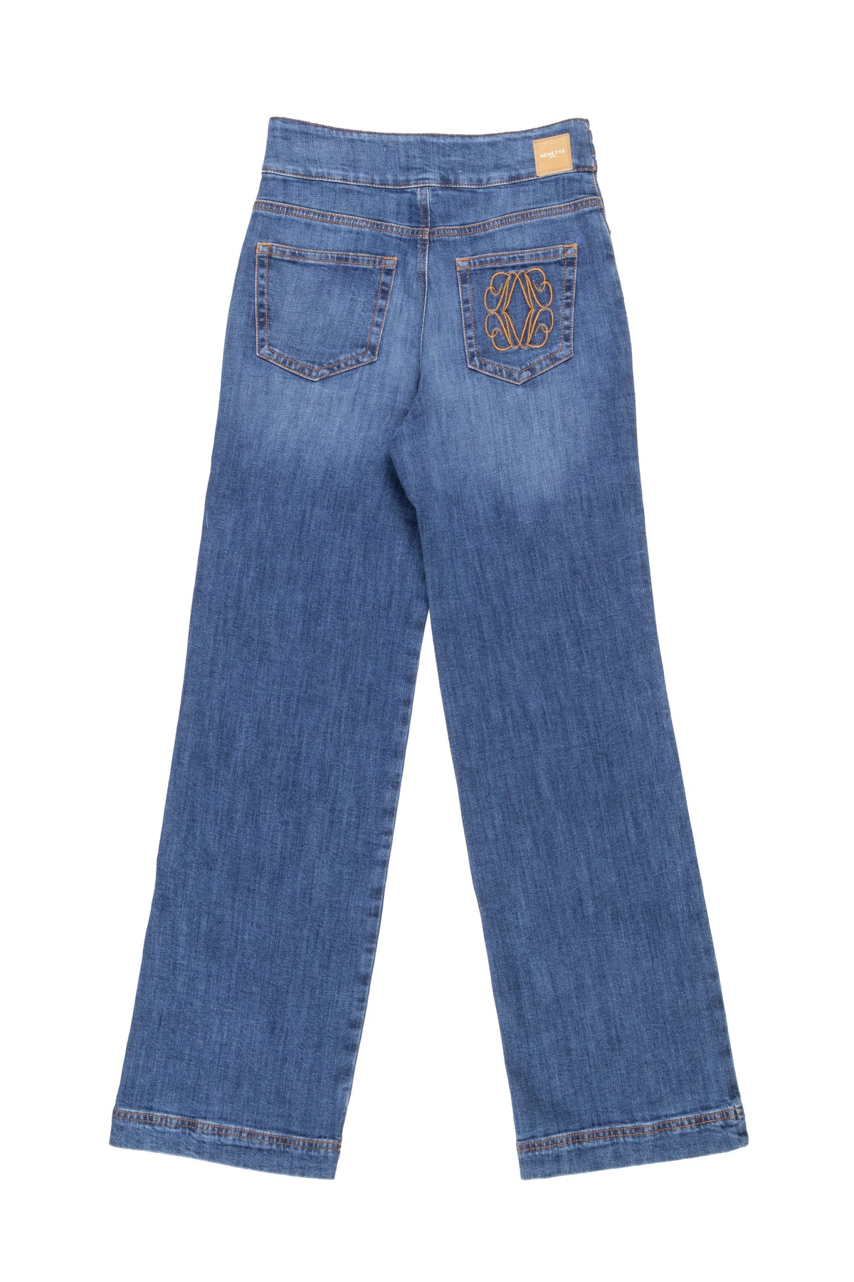 Nenette Jeans Santeria met goudkleurige ringen details in de taille, ietwat cropped model.