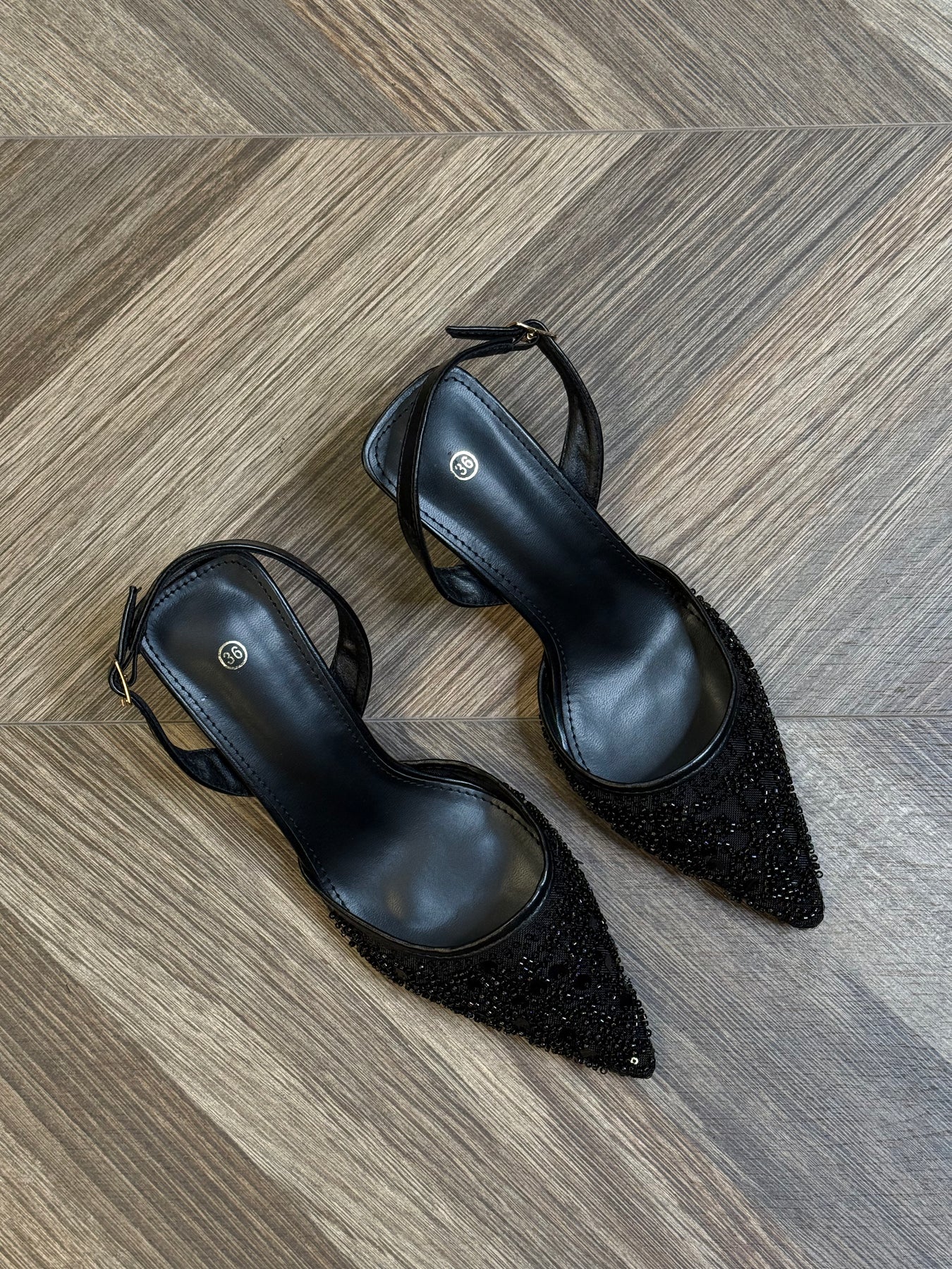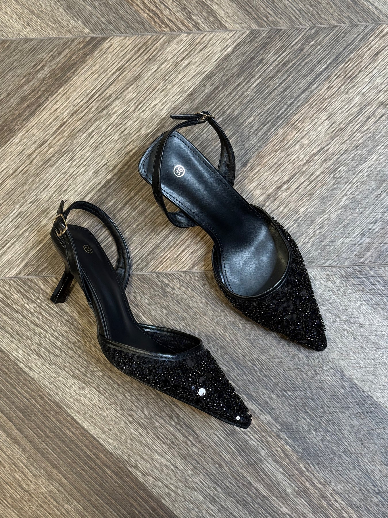 Gabi Sparkling Kitten Heels Zwart met vestelbaar bandje, ze vallen goed op maat.