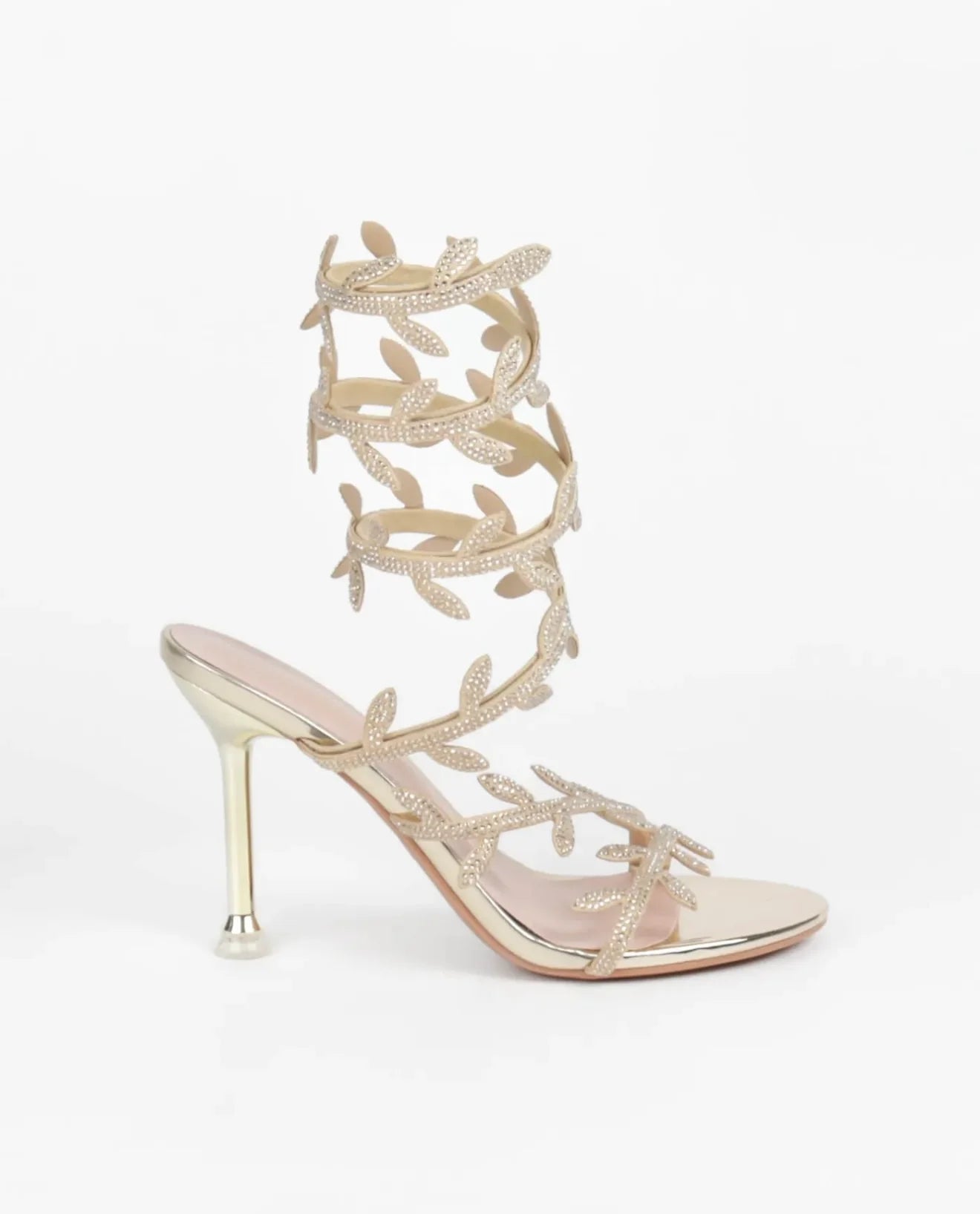Moise Golden Leaf Heels met bandje om de enkel met gouden hoge hakken. ze vallen goed op maat.