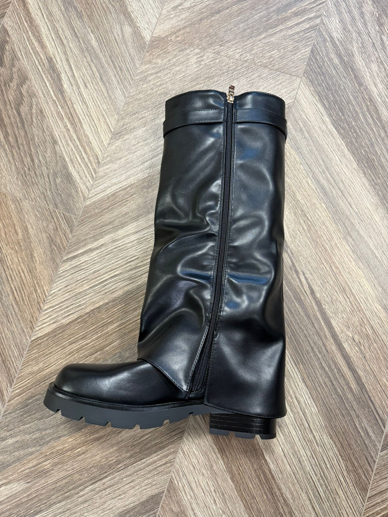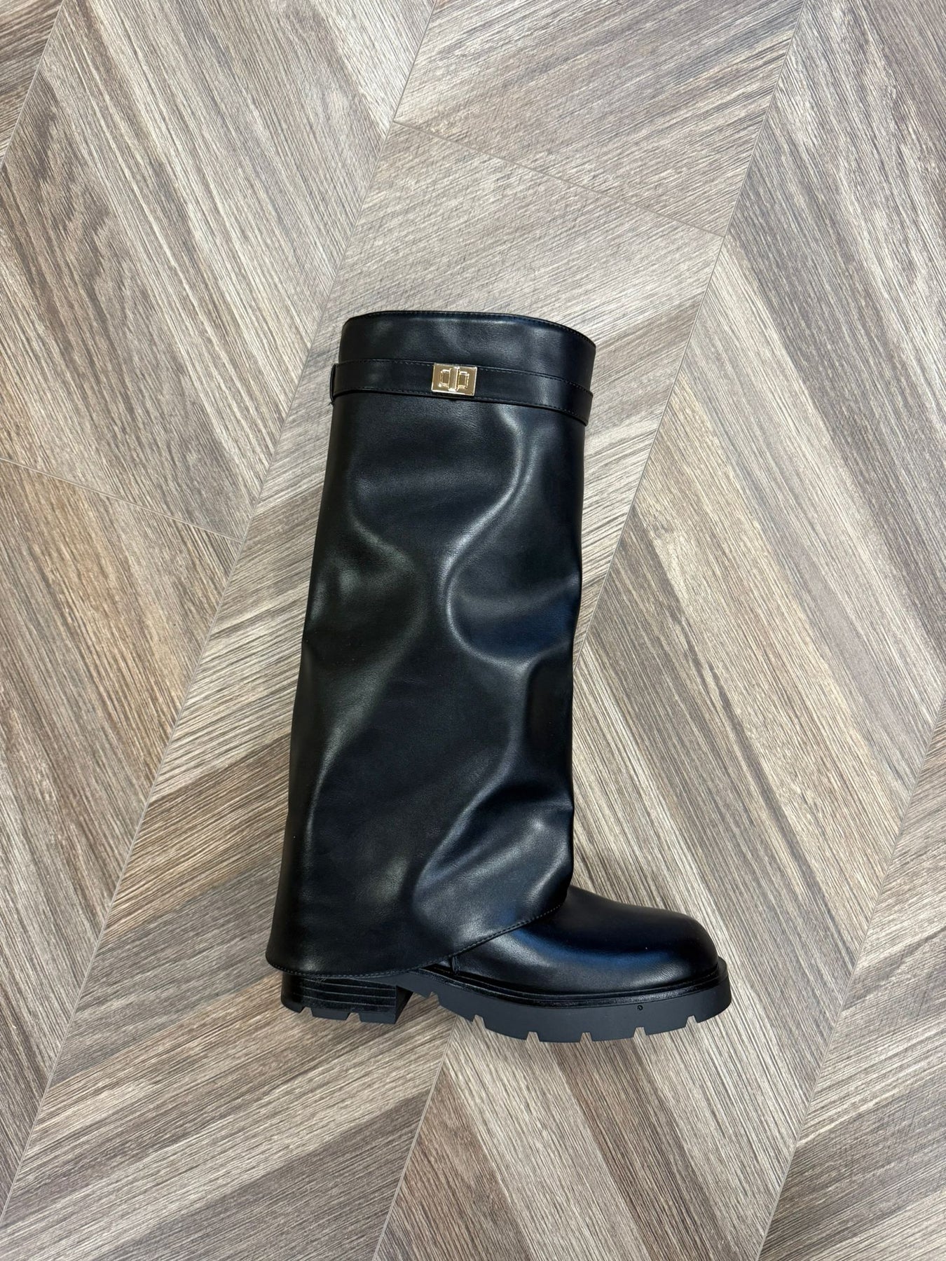Shark Boots Black Leather Look met ritssluiting en gouden gespje
