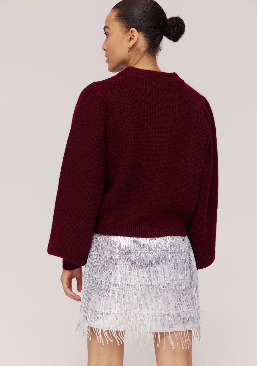 LYSANNE-JU WINE BERRY The knit youll never want to take off. De LYSANNE jumper is verkrijgbaar in zowel wine berry als icy blue. Gemaakt van een zachte blend met wol en gerecyclede vezels, waardoor de knit comfortabel duurzaam is. De losse fit maakt dit item perfect om casual te dragen met jeans of chic met een rok. Materiaal: 48% GERECYCLED POLYESTER, 30% POLYESTER, 13% ACRYLIC, 6% WOOL, 3% SPANDEX