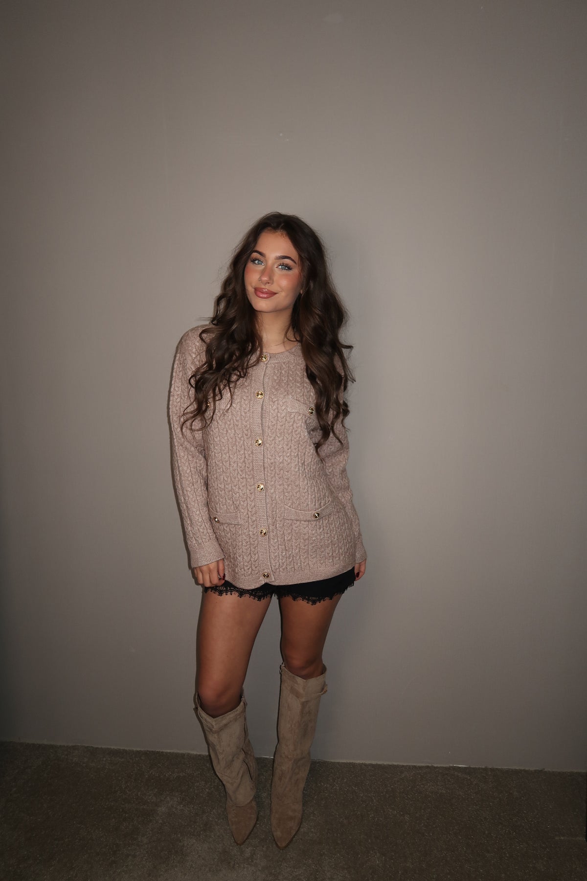 Kabelvest met Gouden Knopen Beige
