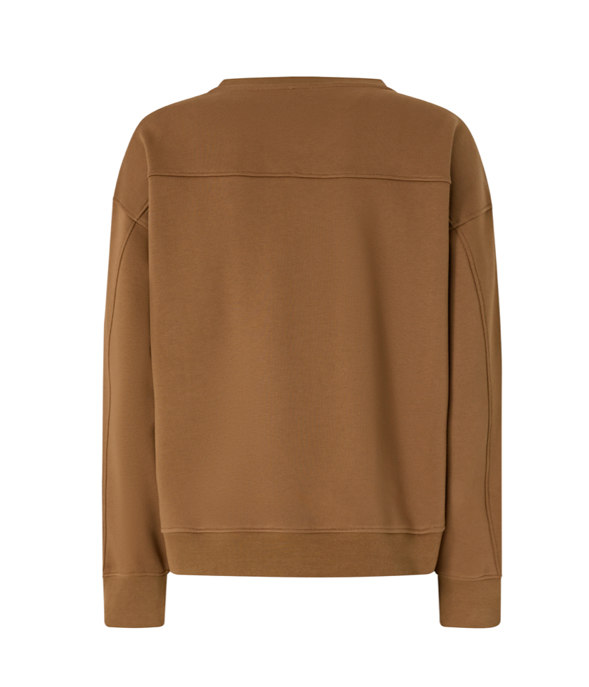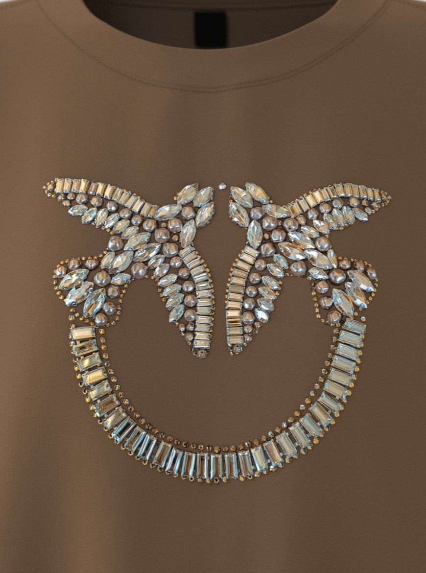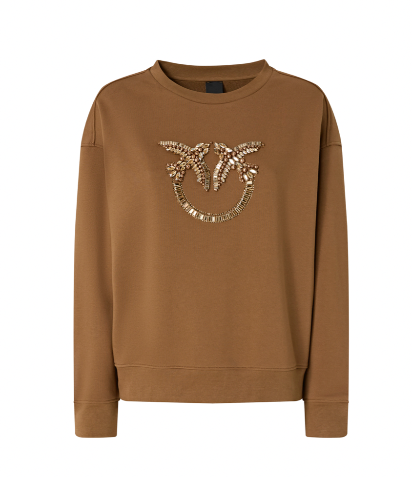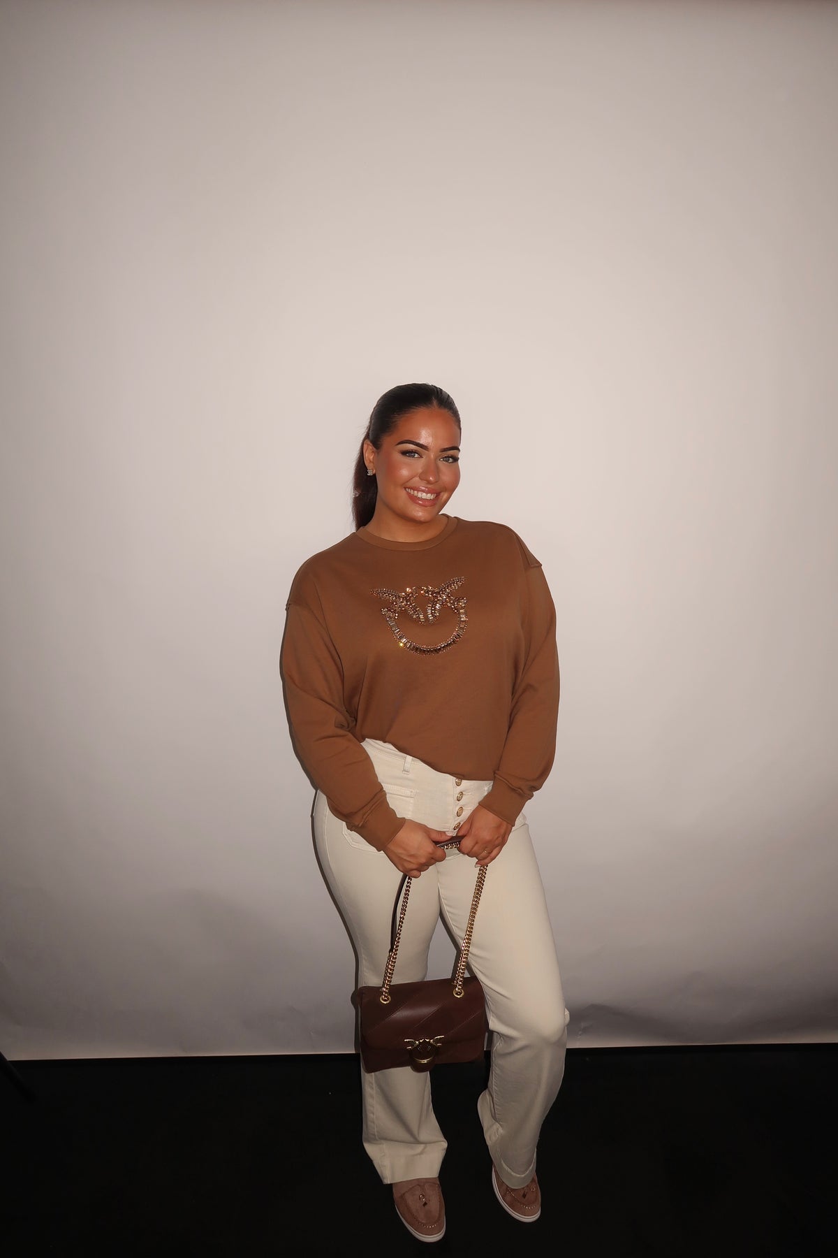 Pinko Nelly Sweater in Coffee Brown met Pinko Logo in Steentjes.