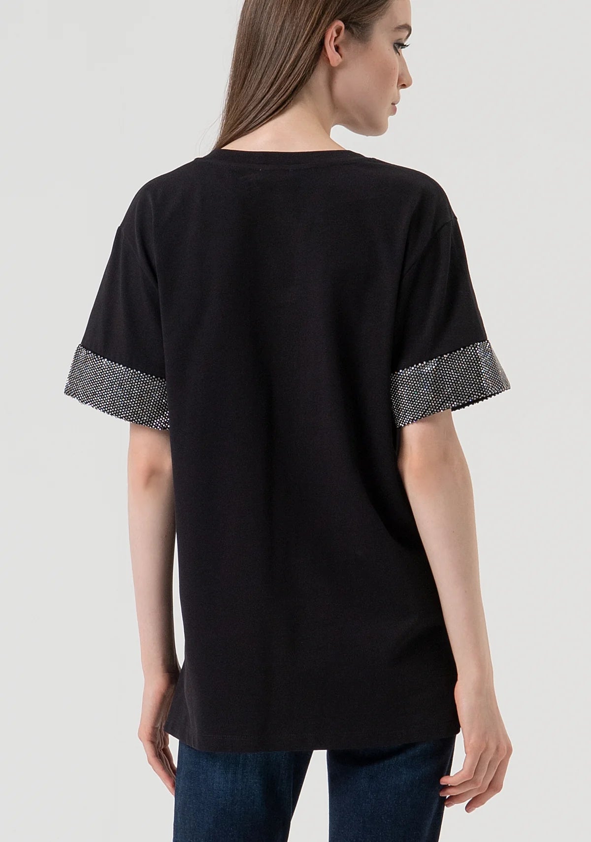 Fracomina T-Shirt Oversized Fit met Sparkling Mouwen.