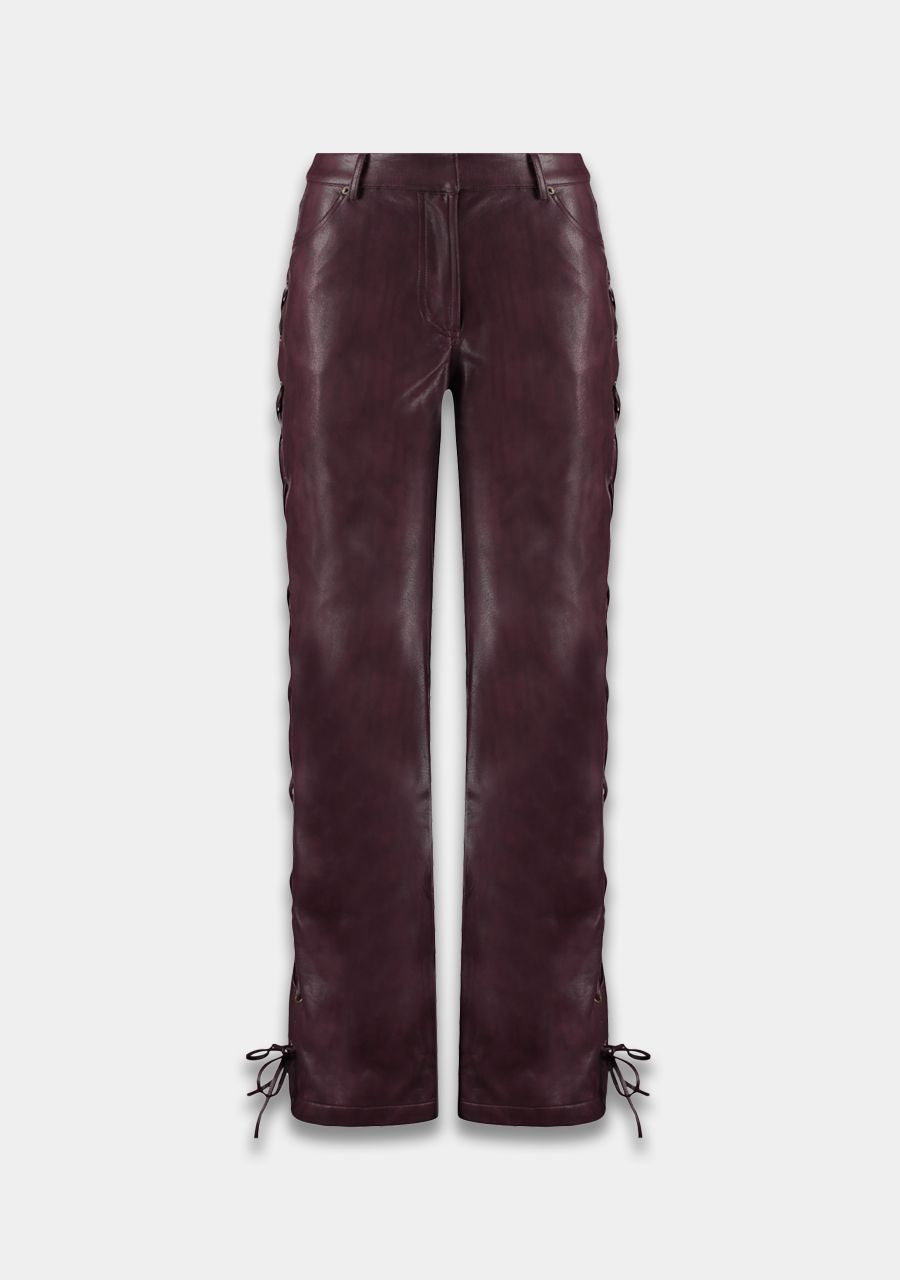 A playful twist in red. De SALLY pants in felrood hebben een moderne uitstraling dankzij de PU-viscose mix. Voor dagen waarop je outfit pit mag hebben.